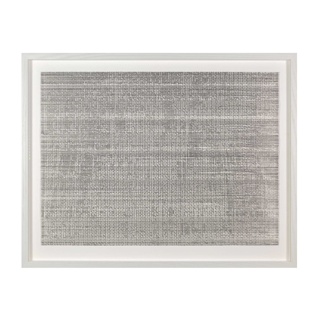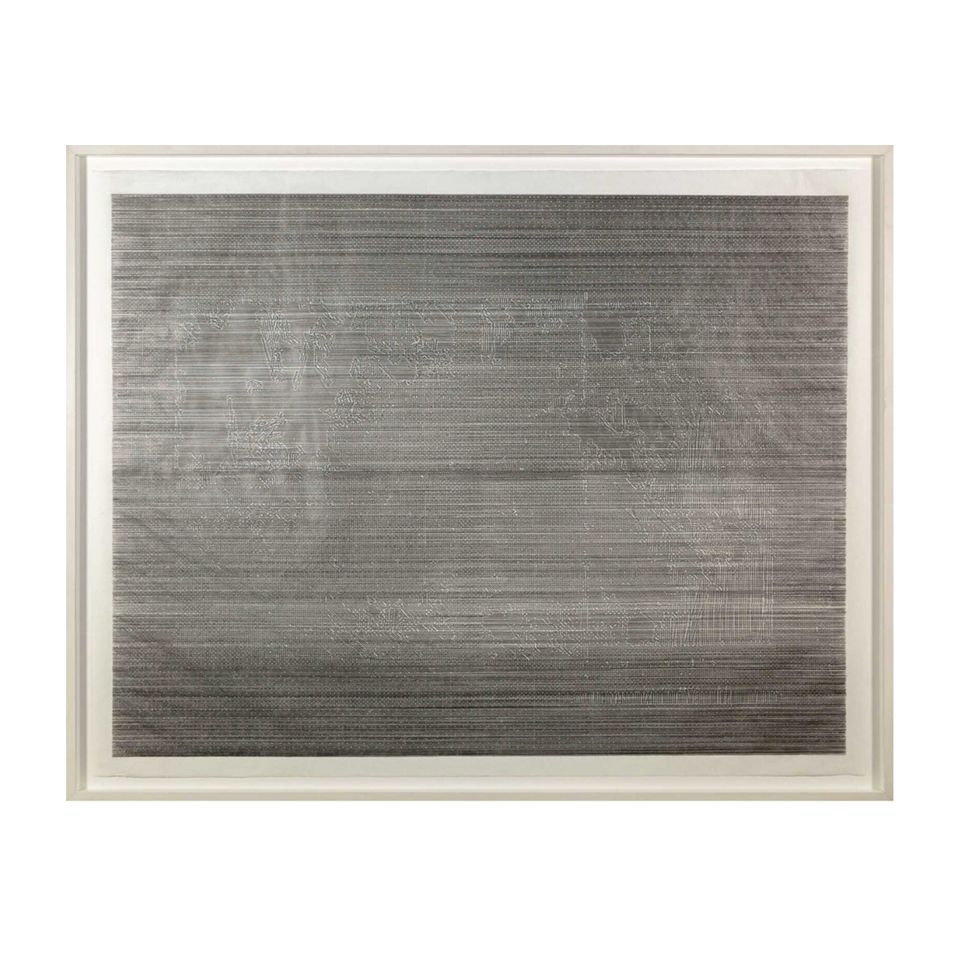 The heavy paper-cuts were employed as masks to expose three photo-etching plates using UV light, corresponding to the red, green and blue coded channels. Secondly, the three heavy paper-cuts were used to impress and lift off wax on soft-ground plates, which ultimately destroyed the paper-cuts. The three photo-etched plates were inked in translucencies of white and printed in sequential layers onto a digital print on Kozo paper of the same original photograph Seeing Vermont I; the same inking and printing process was applied to the three soft-ground plates with the second image Seeing Vermont II.