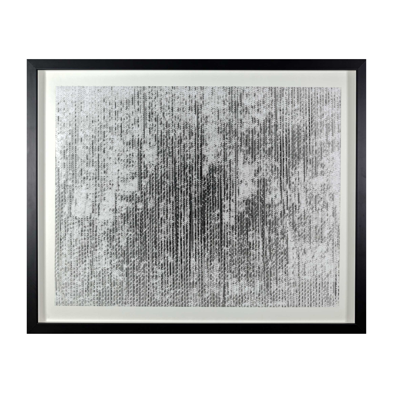 The three lightweight cut-outs of Japanese Kozo paper were layered between sheets of glass within a frame to make colourless composite pictures that mimic the software's screenic perspective (RGB Forest I and II).
